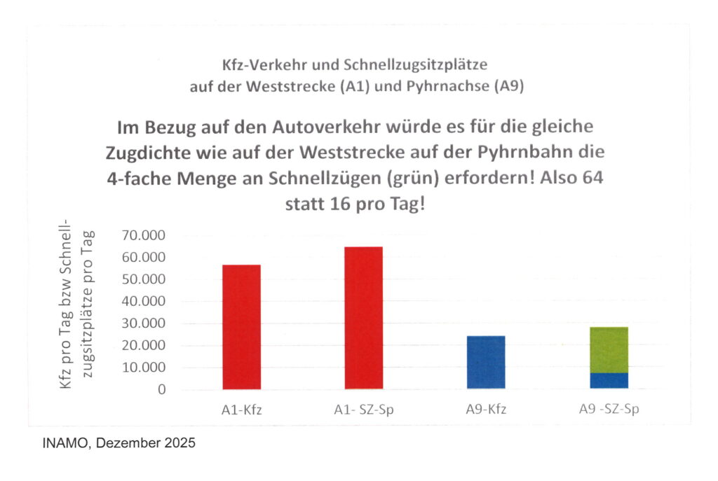 Auf den parallelen Autoverkehr bezogen müssten 4 x so viele Züge unterwegs sein!